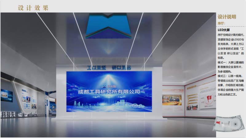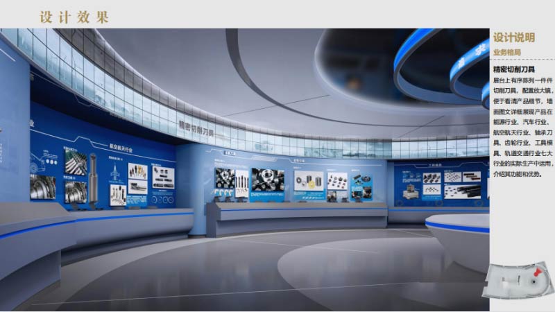 展厅以“金属的诗意·数字的革新”为设计哲学,将工具所“锐意进取,求实创新,同心同德,积极奉献”的工业基因转化为可感知的空间语言,通过金属材 质工艺的极致表达与数字化体验的深度融合,打造一座兼具工业美学与现代科技的行业标杆展厅。