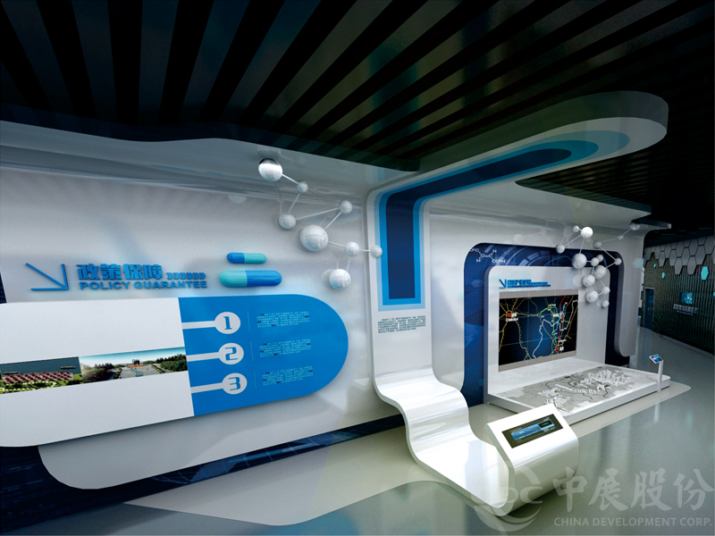 优秀的展厅设计科技含量高展厅设计有中控系统,包括总体控制、厅内照明、灯饰、计算机、大屏幕、操作台以及空调等,强弱电系统按照预先编制的运行程序自动运行,从开启电源到关闭电源,都不需要人为控制,自动运行。